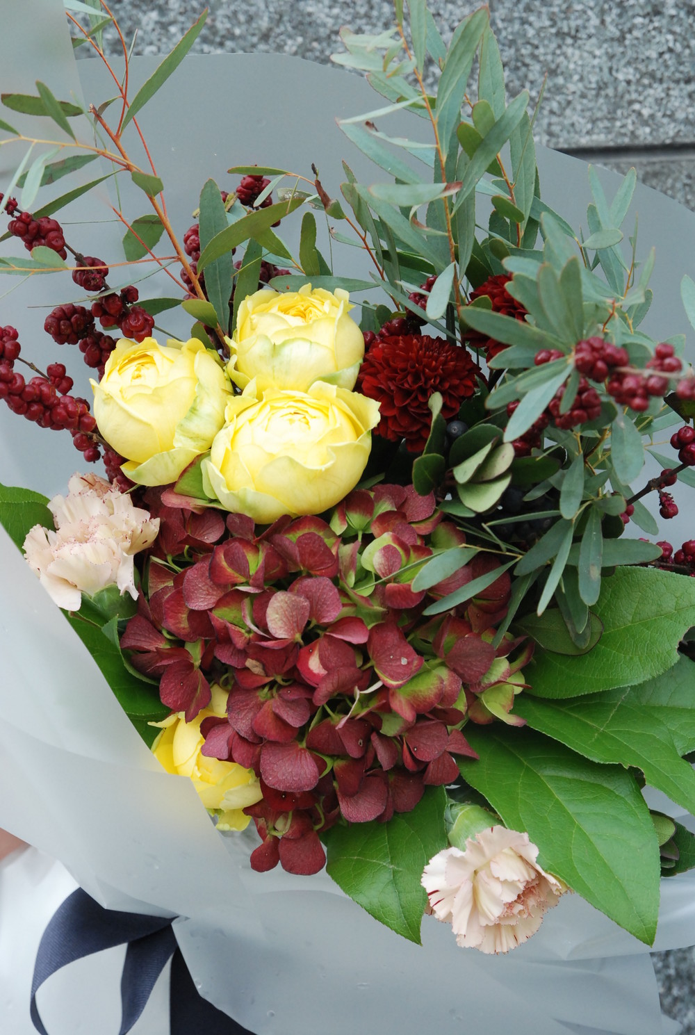 브라운빛의 수국과 어레인지된 핸드타이드 :)