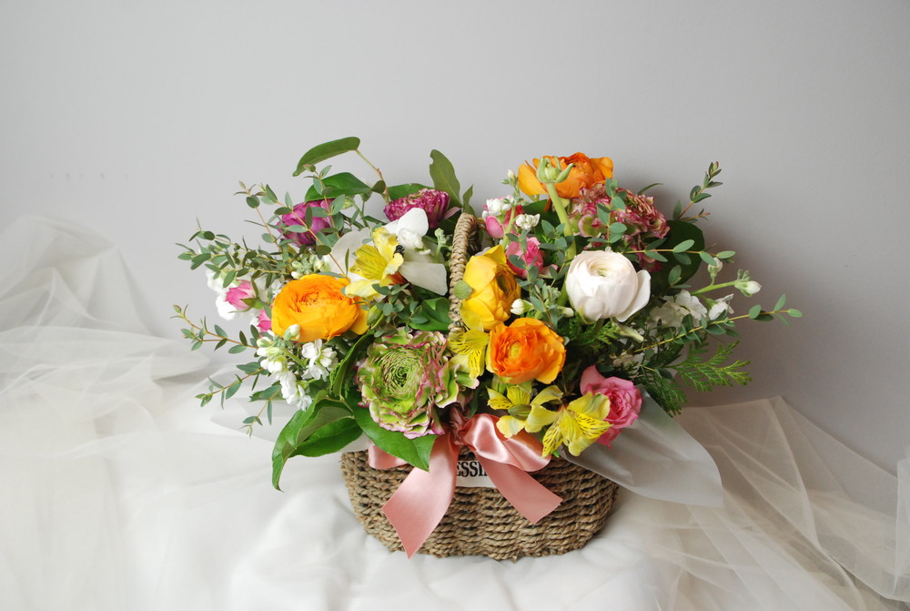 봄향기가 날것같은 오렌지컬러의 플라워바스켓