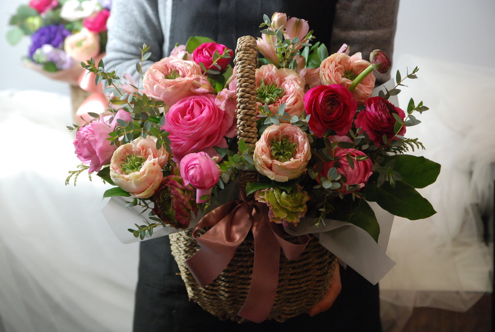 예쁜 라넌큘러스플라워바스켓입니다.