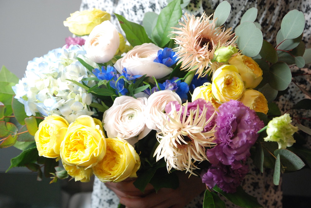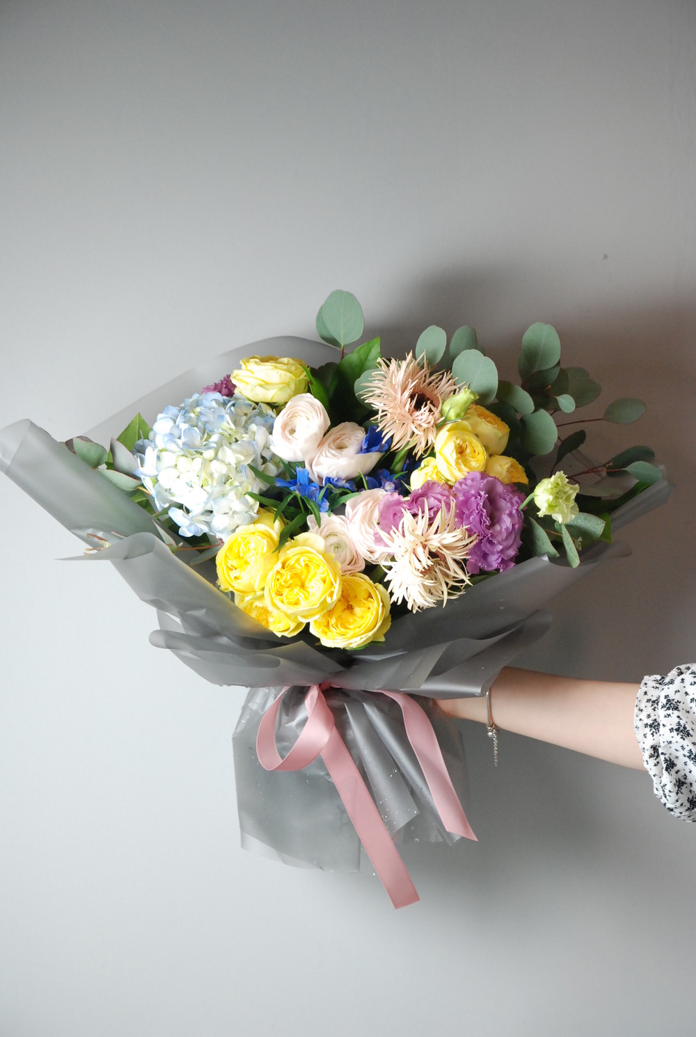 앙증맞은 노랑이 라넌큘러스가 들어간 핸드타이드:)